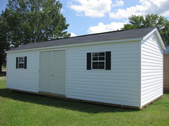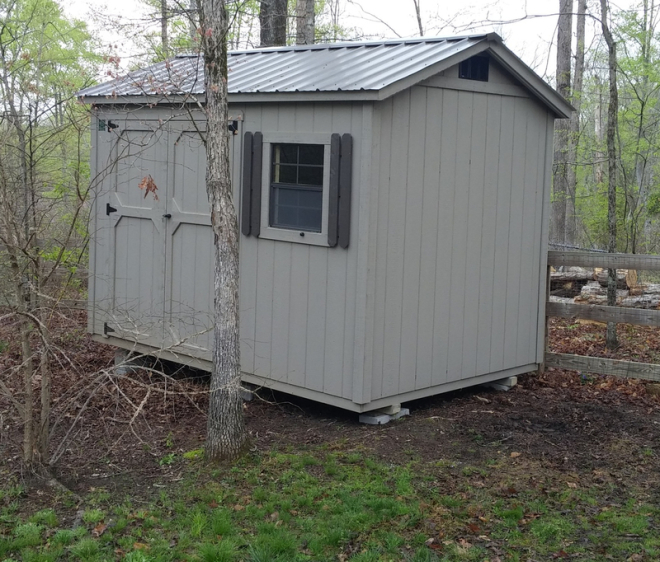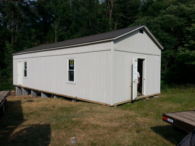 Building leveled with concrete leveling blocks on all buildings, with up to 20 blocks included on any building size up to 12 x 24 or up to 30 blocks included on all buildings 12 x 28 or larger
