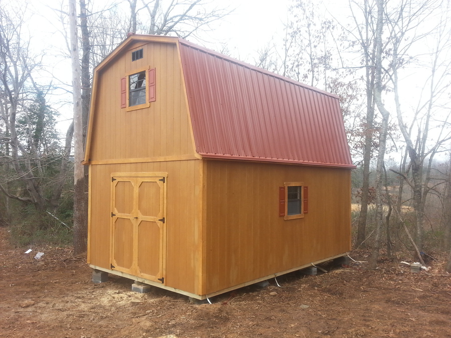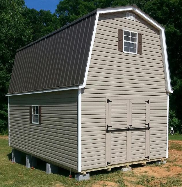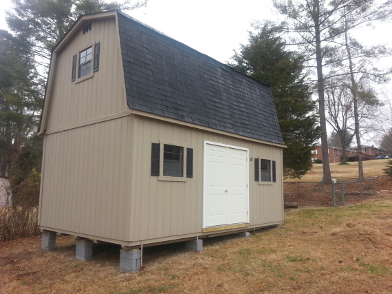 Building leveled with concrete leveling blocks on all buildings, with up to 20 blocks included on any building size up to 336 SF or up to 30 blocks included on all buildings larger than 336 SF
